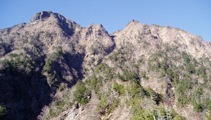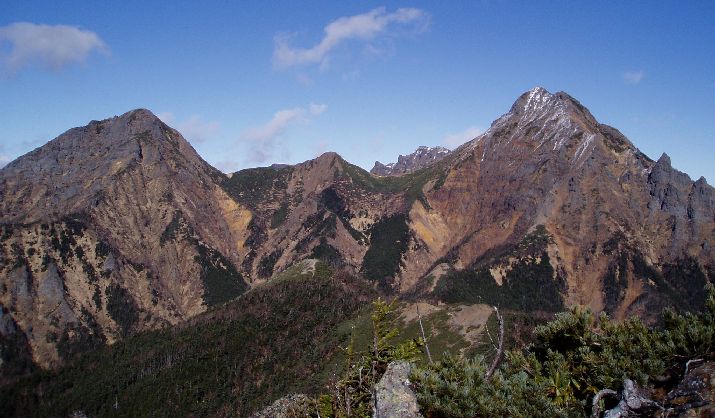 町営たかね荘1561m 発 5:00 ⇒ 出合小屋 1871m 7:10 ⇒ 旭岳 2672m 12:00 ⇒ キレット小屋 2445m ⇒ 行者小屋 2354m 15:30⇒ 美濃戸山荘 17:00 ⇒車 ⇒ 茅野駅 18:00着