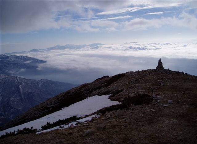 雲海を背にした丸山ケルン