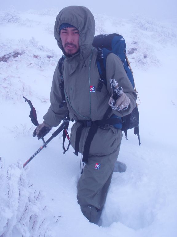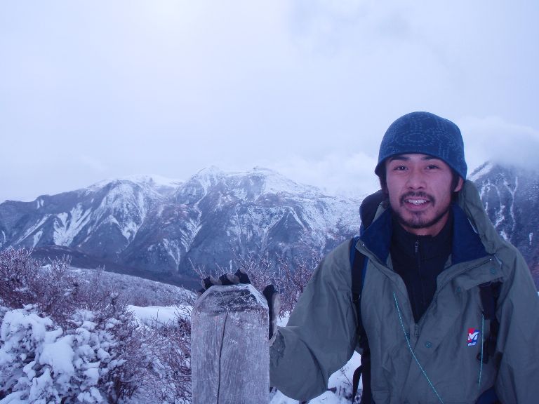 若手カヤックガイドのNくん (平治岳北尾根山頂にて)