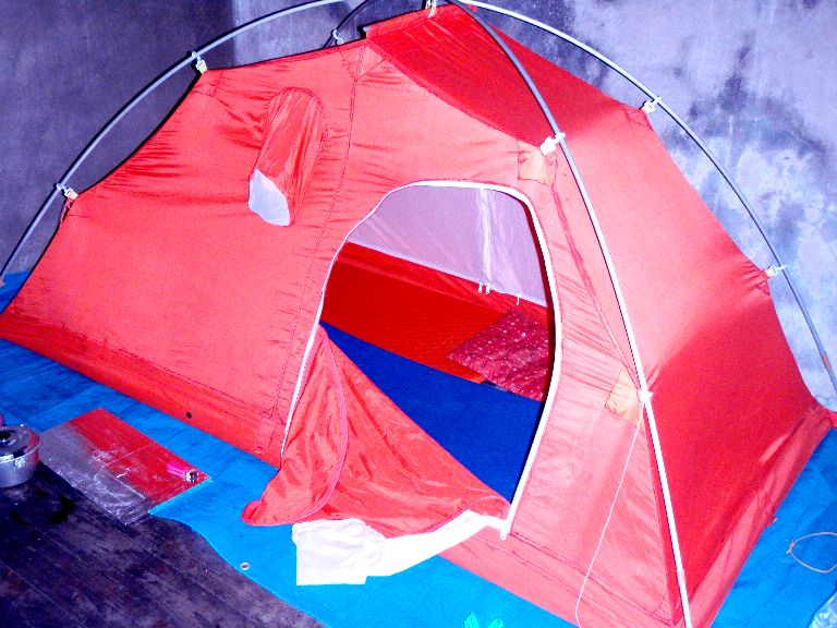 坊ガヅルの避難小屋には、我々以外の宿泊者はいなかったので、内部にテントを張りました。