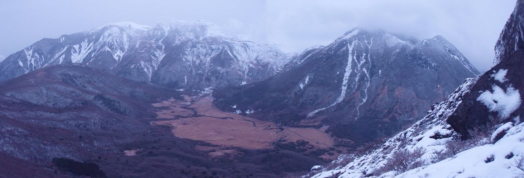 九州内で雪山を体験しようと佐世保のカヌーショップ『フリーダム』の若手カヤックガイド Nくんと二人で平治岳北尾根から三俣山南峰に登りました。