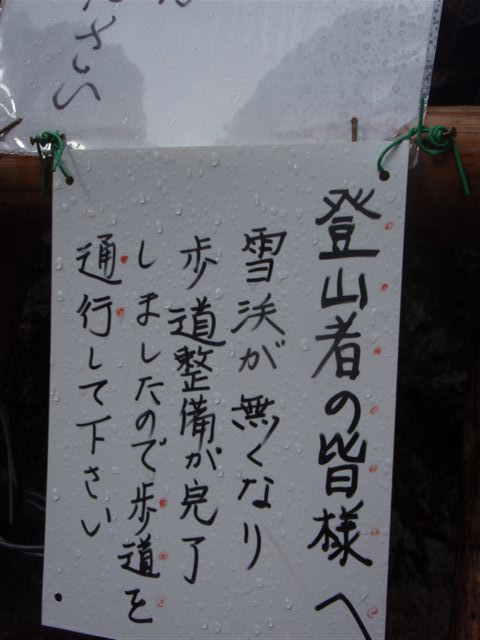 雪渓上は、歩かせたくないらしく上記のような告知板がありましたが、問題なく通過できました。