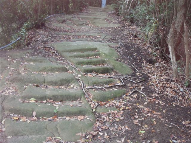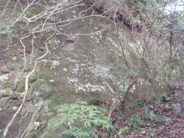 一枚岩の砂石です。この道は、車でも通行できるくらいの幅があります。砂岩を砕いて、道を作ったようです。