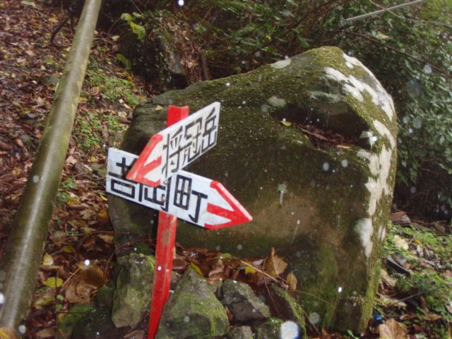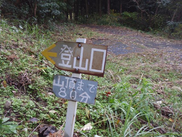 吉岡町からは、消費者金融の看板を目印に山手の方へ左折します。このあたりは、登山の案内板等は、一切ありませんので、地形図で確認しながら登れば、良い練習になると思います。くれぐれも、止まれのところから左折してくださいね。その先は、ダメですよ。