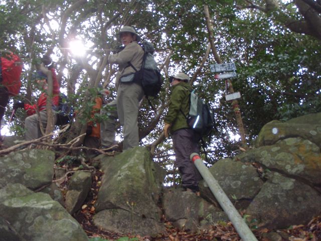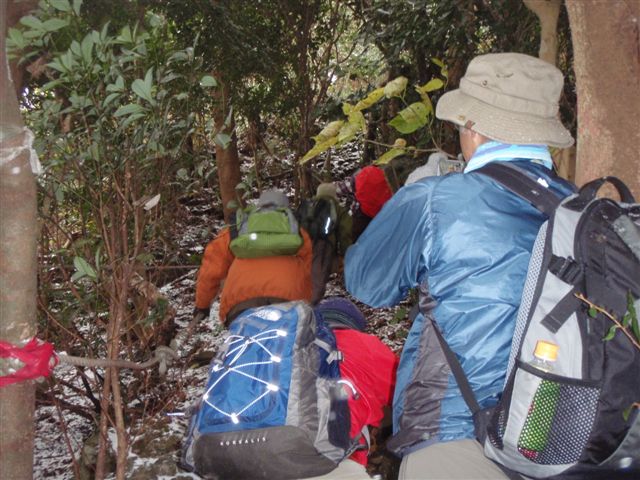 将冠岳の山頂直下は、かなりの急登ですが、太いロープが設置されています。