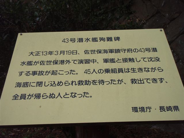 『43号潜水艦殉職碑』はじめて訪れました。このような事実があったことも知りませんでした。