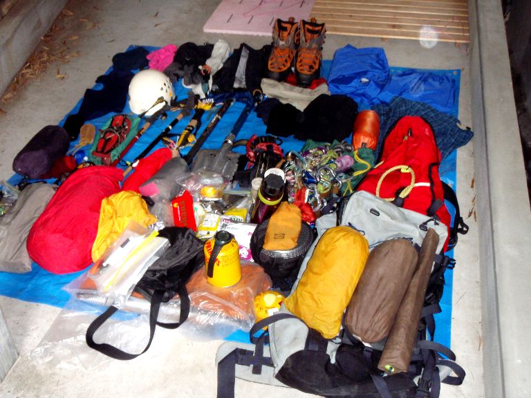 肥満体の70リットルのザックの重量は?です。計測していないので、分かりませんが30`を少しオーバーする位だと思います。結果的に必要以上だった登攀用具が、重さの原因です。