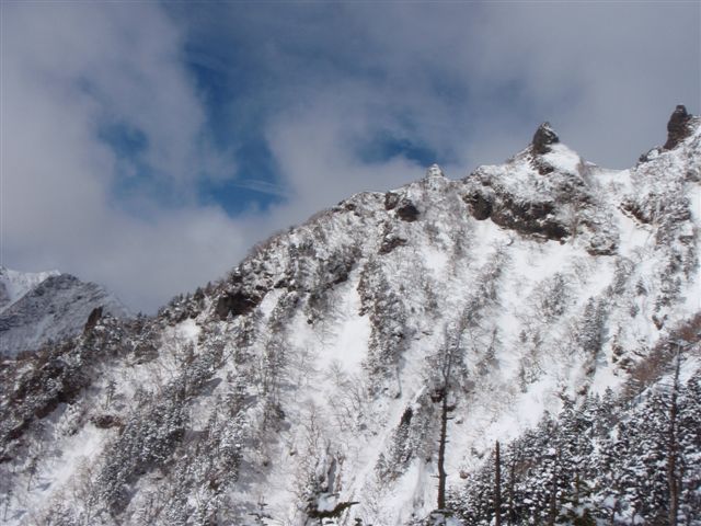 下記の3枚の写真は、17日の降雪後の19日の写真です。上記に同じ場所の写真がありますので、確認してください。この約20cmの降雪で、しばらく雪崩が多発していました。