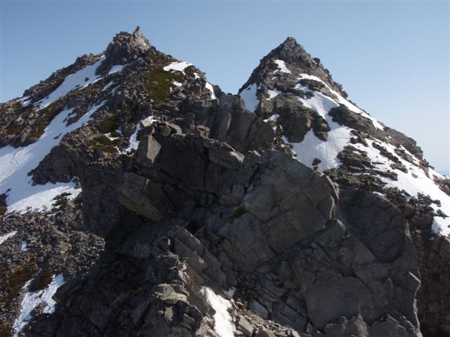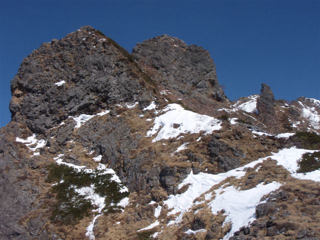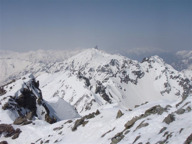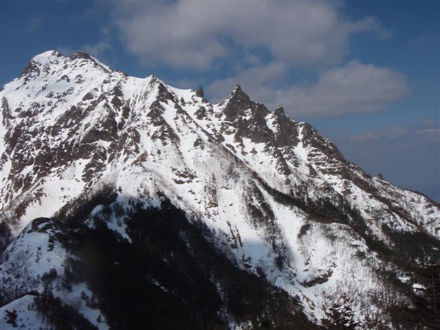初めての天狗尾根は、可能な限り直登して越えました。春山であったので何とかなりましたが、冬山の単独で同じ登り方をすることはできないと思います。天候に恵まれ助かりました。