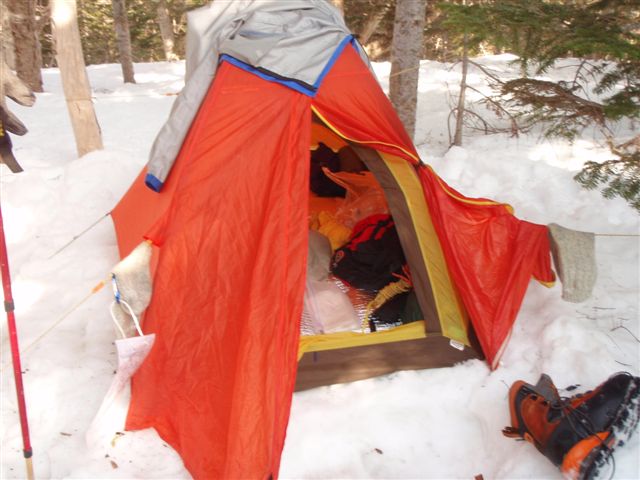 慣れないこともあり、多大な時間を使い、山頂直下で幕営しました。