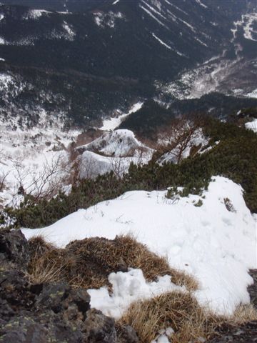 阿弥陀岳からの下降は、完全に雪壁状でトレースもなく緊張が続いた。