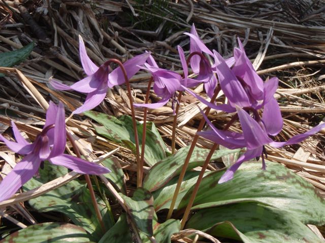 カタクリは、九州では一部の山にしか見られませんが、長野県では、そう珍しい花ではないようです。思ったより、小さなかわいい花でした。