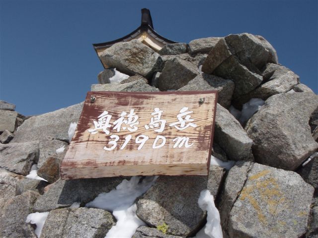 私たちは、明神岳の山頂にダイレクトに抜けました。もう日暮れ近かったので、少し緊張しましたが、何とか主峰に抜けることができました。