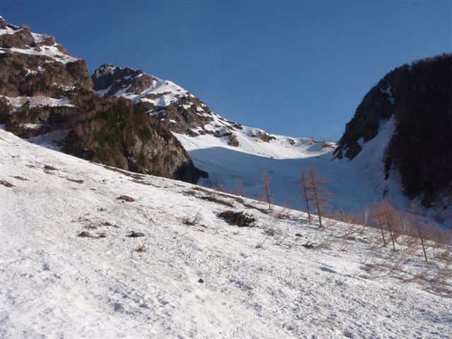 白出のコルからグリセードや尻セードで下山しても、途中クレバスなどがなければ、どこかで必ず停止すると思います。