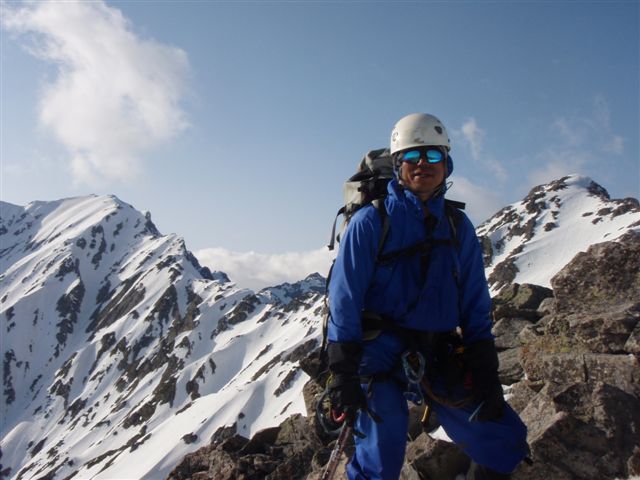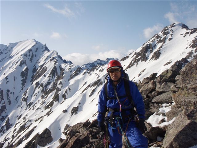 林さんと二人で、明神岳東稜です。今回は、細かなルートの確認は、リーダーの林さんがしてくれました。