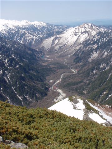 この写真は、今回の山行で私が最も気に入っている写真です。上高地がその昔、V字谷だったということを連想させると思いませんか?